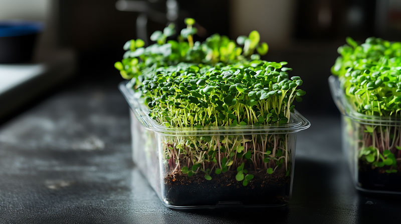 Мікрозелень – це молоді паростки рослин, які містять у кілька разів більше вітамінів і корисних речовин, ніж зрілі овочі. Вона швидко росте (7–14 днів) і не потребує багато місця. Популярні варіанти: